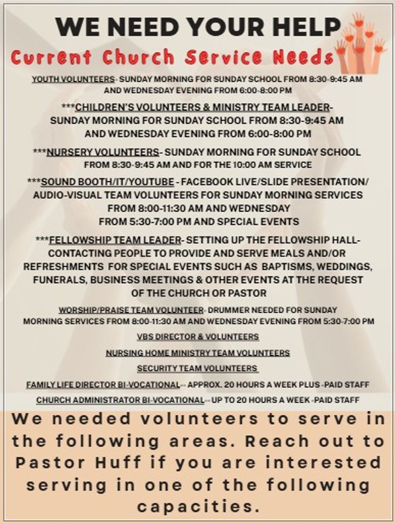 My name is Daryl Huff, and I have recently been honored to serve as the new Senior Pastor of First Baptist Church Smithville. My family and I are grateful to be joining this community, and we are excited to call Smithville home. I am honored to continue to build upon the work that the previous pastor, Michael Murphy, has already established and done so well in loving and serving our community, and the many pastors before him in the 135 year history of FBC Smithville. As I’m sure you already know, First Baptist Church Smithville is a church that cares deeply about this town and the people who live here. Our desire is simple: to love God, to love people, and to serve our community well. Whether you attend church regularly, haven’t been in a while, or have never been at all, there is a seat for you here. My heart as a pastor is to walk alongside people in every season of life—to celebrate joys, to support families, to stand with those who are hurting, and to offer hope through Jesus Christ. We believe the church should be a place of grace, healing, and encouragement, and a church that actively serves its community, not just on Sundays, but every day of the week. Smithville is a special place, and we want to continue being a church that contributes positively to the life of this community. We would love the opportunity to get to know you, serve you, and partner together in caring for our town. I personally invite you to come visit us at First Baptist Church Smithville. You’ll find a friendly church family, meaningful worship, and a place where you and your family are valued. Thank you for welcoming my family and me to Smithville. We look forward to meeting you.